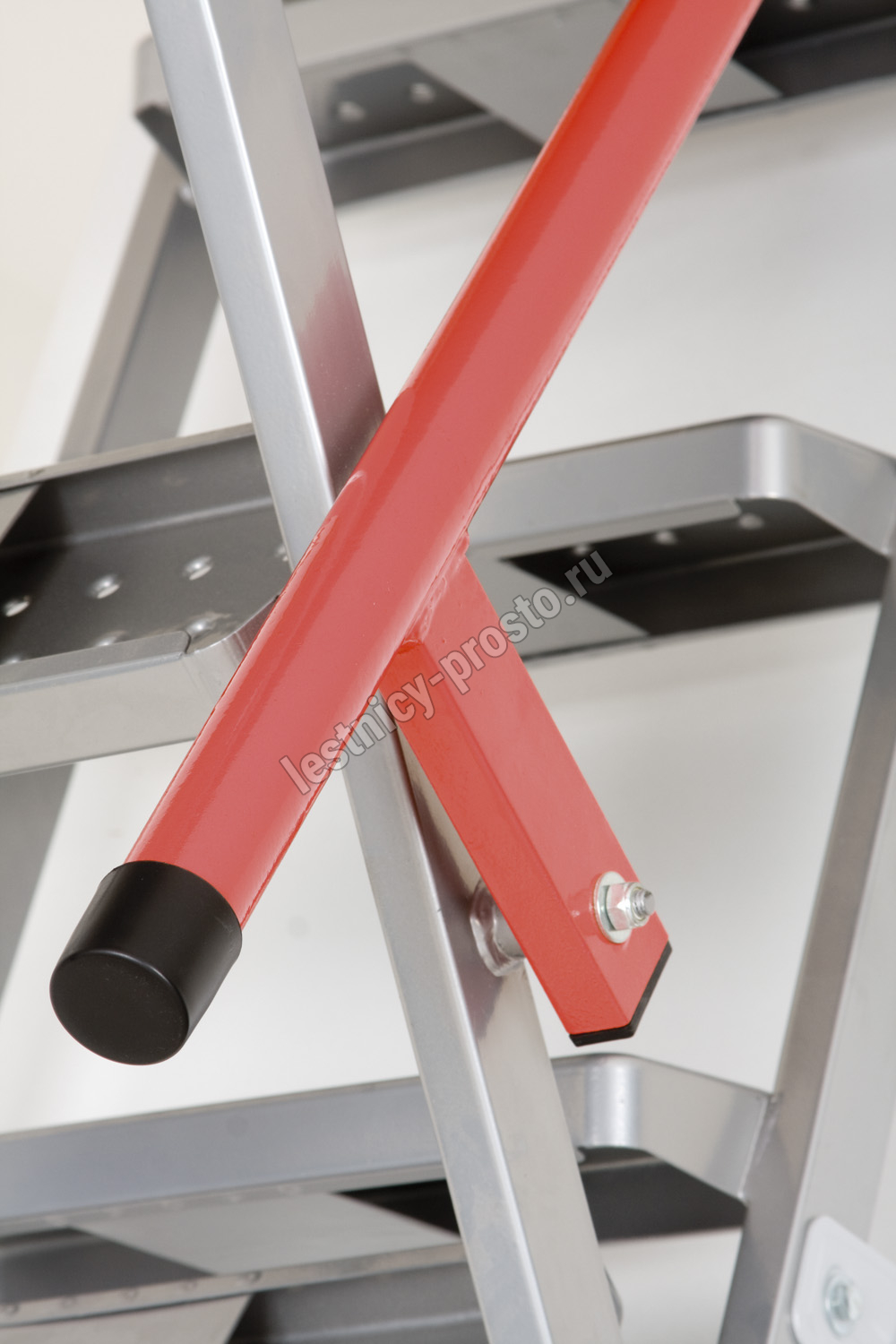 Складная металлическая чердачная лестница FAKRO LML Lux выполнена из оцинкованной стали, оснащена телескопическими ножками с наконечниками, которые позволяют подогнать лестницу под высоту потолка.