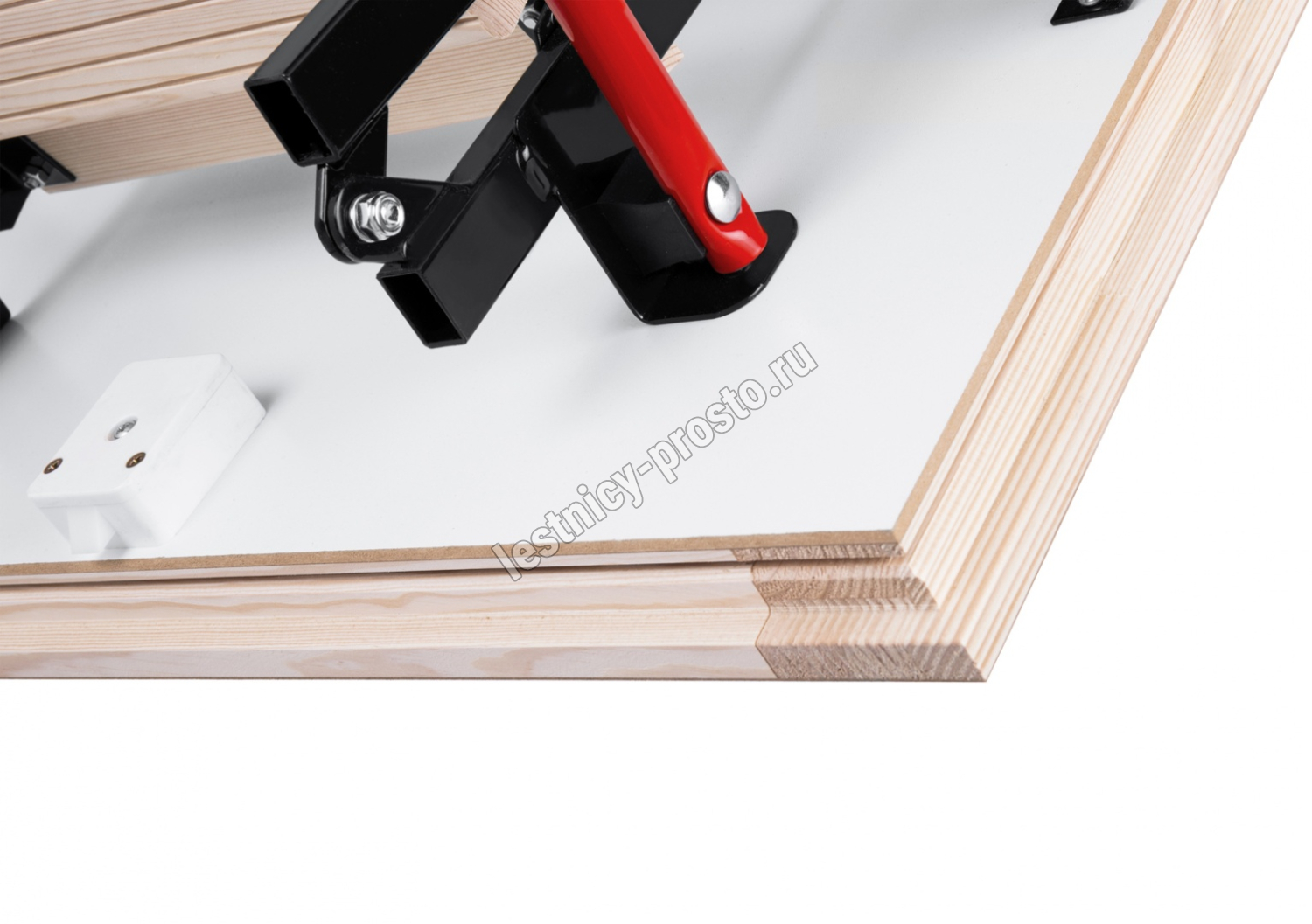 Складная 4-х секционная чердачная лестница. Ступени выполнены из сосны, имеют противоскользящие насечки, направляющие из металла.