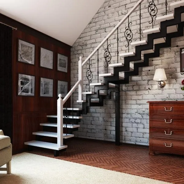 • Короб лестницы: металлический , выполнен из стали окрашен в белый цвет.