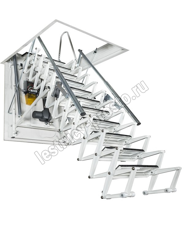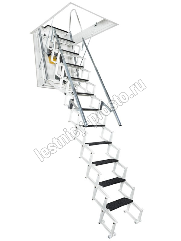 Эта лестница удобна и надежна, а так же безопасна в использовании. Она представляет собой механическую автоматизированную конструкцию, которая выполнена из современных прочных материалов и представлена в широкой линейке размеров.