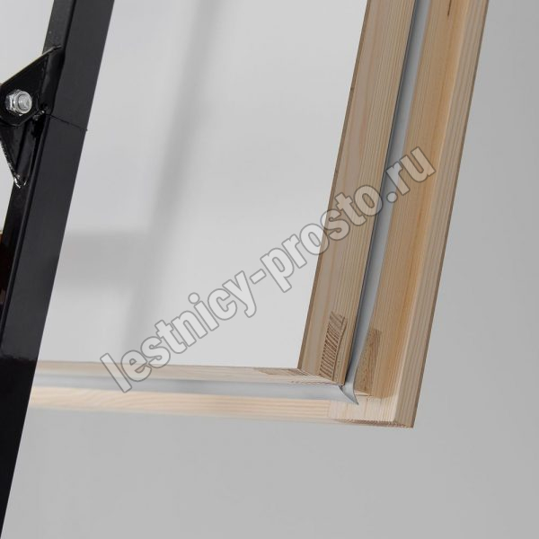 Складная 4-х секционная чердачная лестница. Ступени выполнены из сосны, имеют противоскользящие насечки, направляющие из металла
