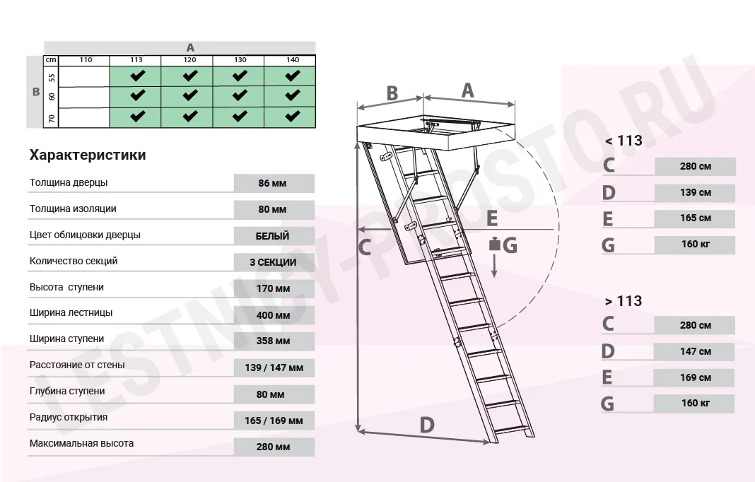 | Чердачная лестница OMAN POLAR 70×113 см, h-280 см |