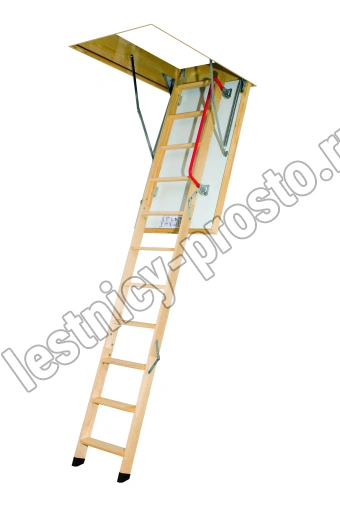 Чердачная лестница LTK Thermo изготовлена из сосны высшего качества и укомплектована утепленной крышкой люка толщиной 66 мм с повышенными теплоизоляционными свойствами. Данную модель лестницы можно использовать даже в домах, где значительна разница температур между этажами, и тем самым ограничить проникновение холода в жилые помещения. Лестница состоит из трех секций, которые компактно складываются и «хранятся в потолке». Крышка люка облицована ДВП белого цвета, что делает ее практически незаметной при установке в светлом или белом потолке. Для большего удобства и безопасности эксплуатации лестница Thermo оснащена боковым металлическим поручнем, а пластиковые наконечники предохраняют поверхность пола от повреждения и увеличивают устойчивость конструкции