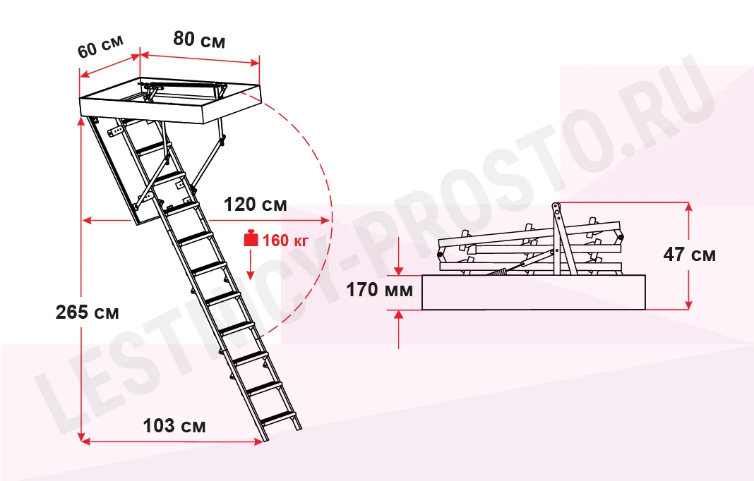 Чердачная лестница с люком OMAN STALLUX EI45 60х80 см, h-265 см