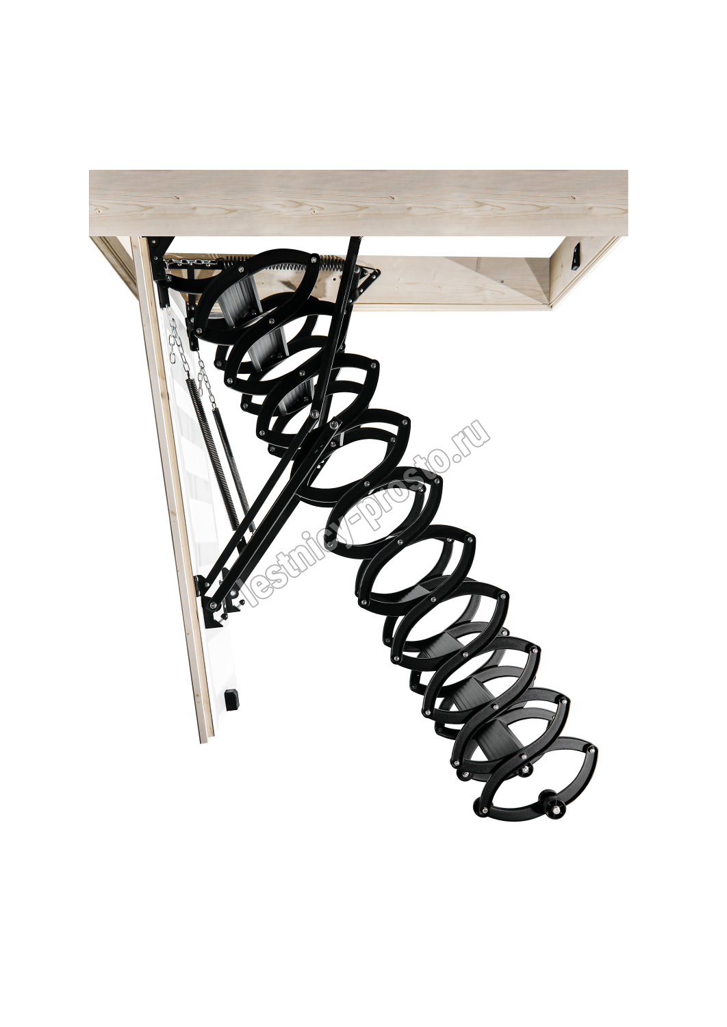 Автоматический замок: обеспечивает надежную фиксацию лестницы в сложенном положении.