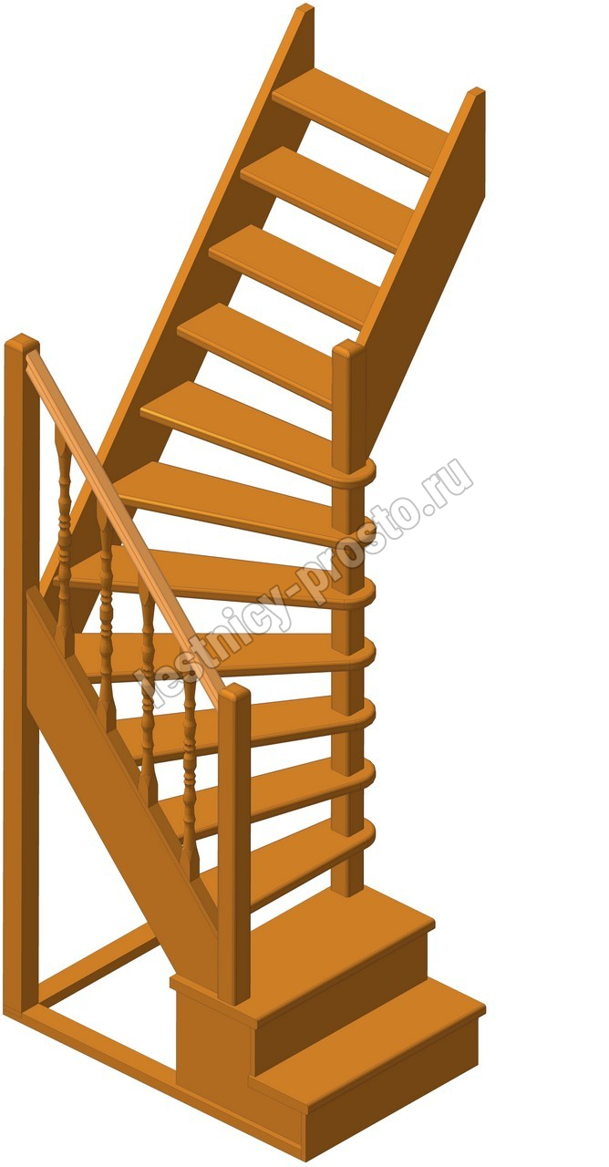 Деревянная межэтажная лестница ЛЕС-91 2925-3150 проем 1390-780, Бук
