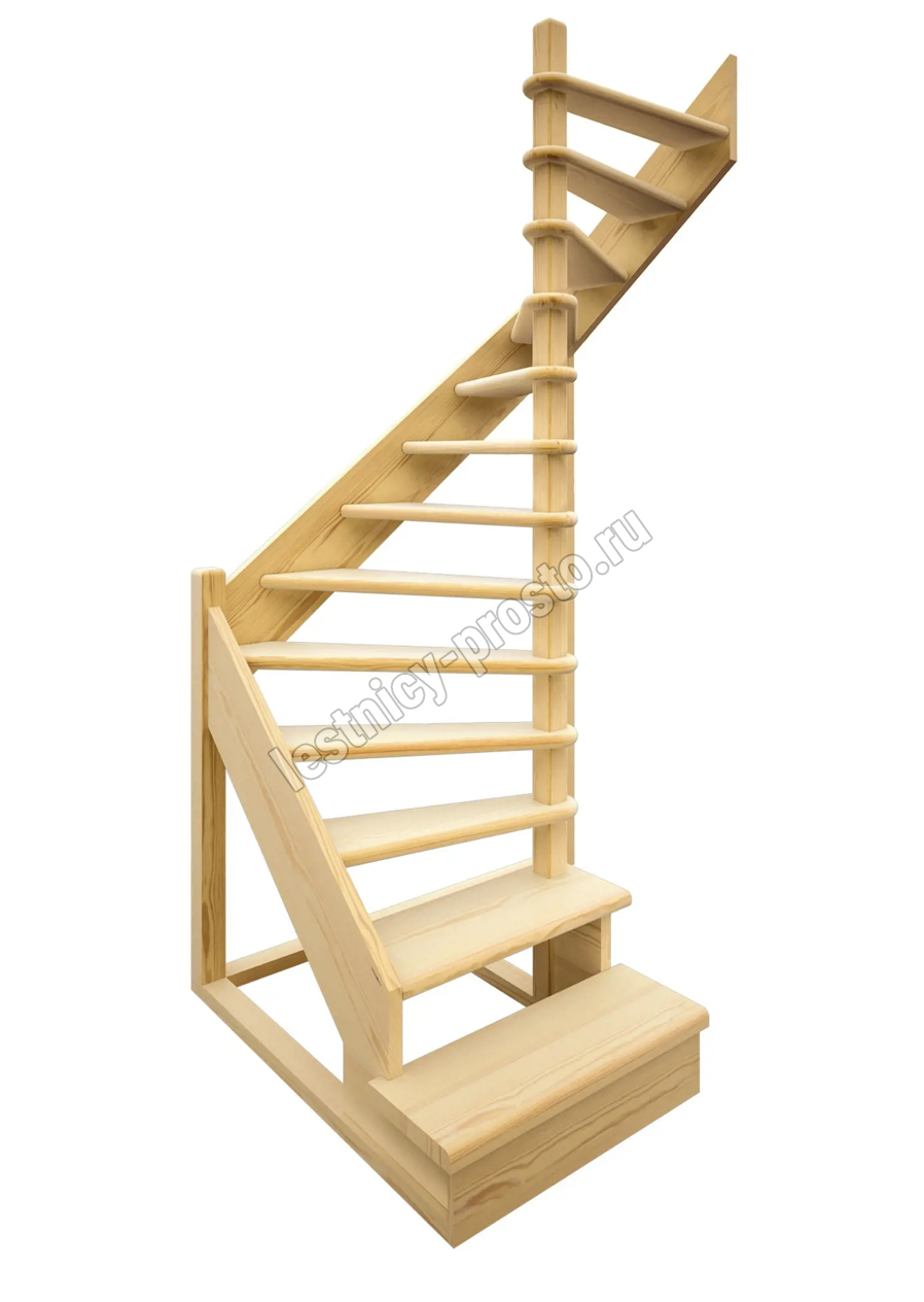 Лестница выполнена из древесины хвойных пород 8 % влажности.
