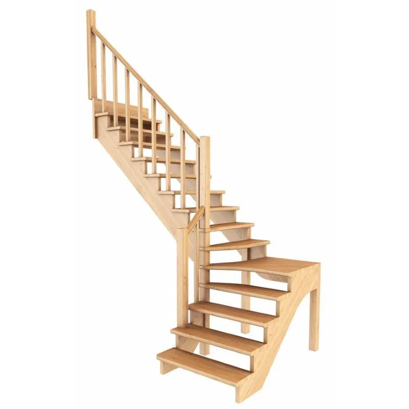 Компактная комфортная лестница с подступенками. Базовый комплект включает в себя деревянные элементы лестницы без какого-либо покрытия. Лестница поставляется в разобранном виде.