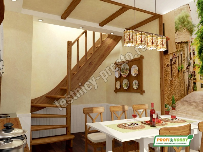 Ступени и поручень лестницы изготовлены из бука, остальные элементы из сосны.