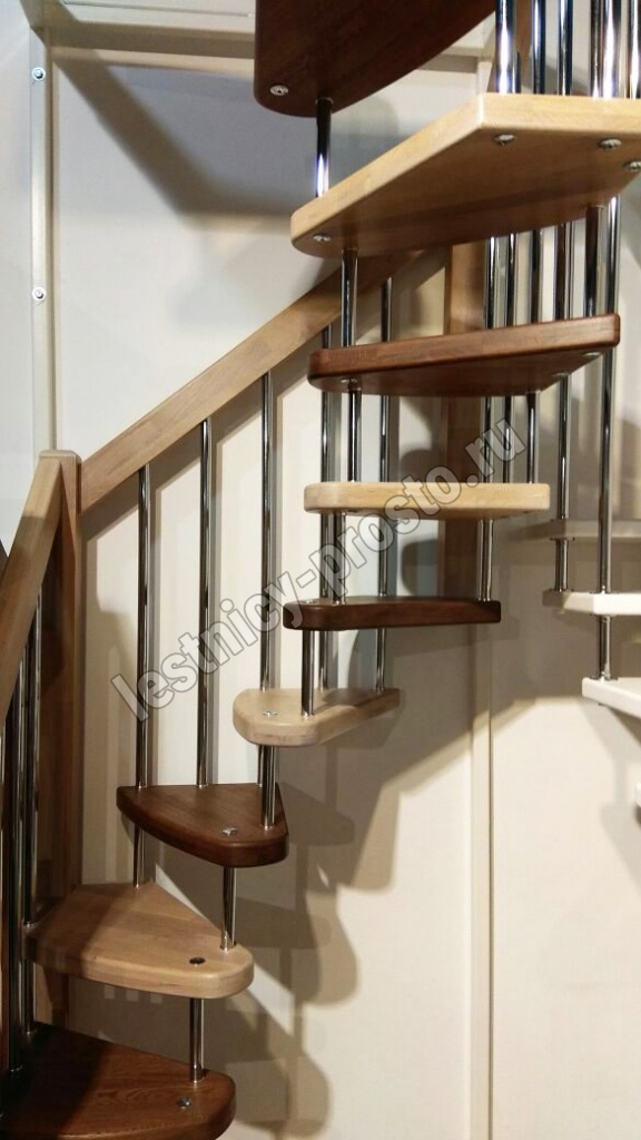 Стильная сверхмалогабаритная лесенка выручит в таких помещениях, где установка других лестниц проблематична из-за нехватки пространства. Базовый комплект включает в себя деревянные элементы лестницы и ограждения без какого-либо покрытия.