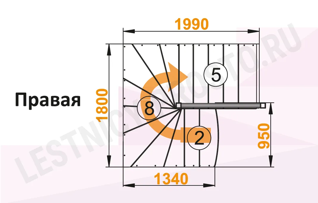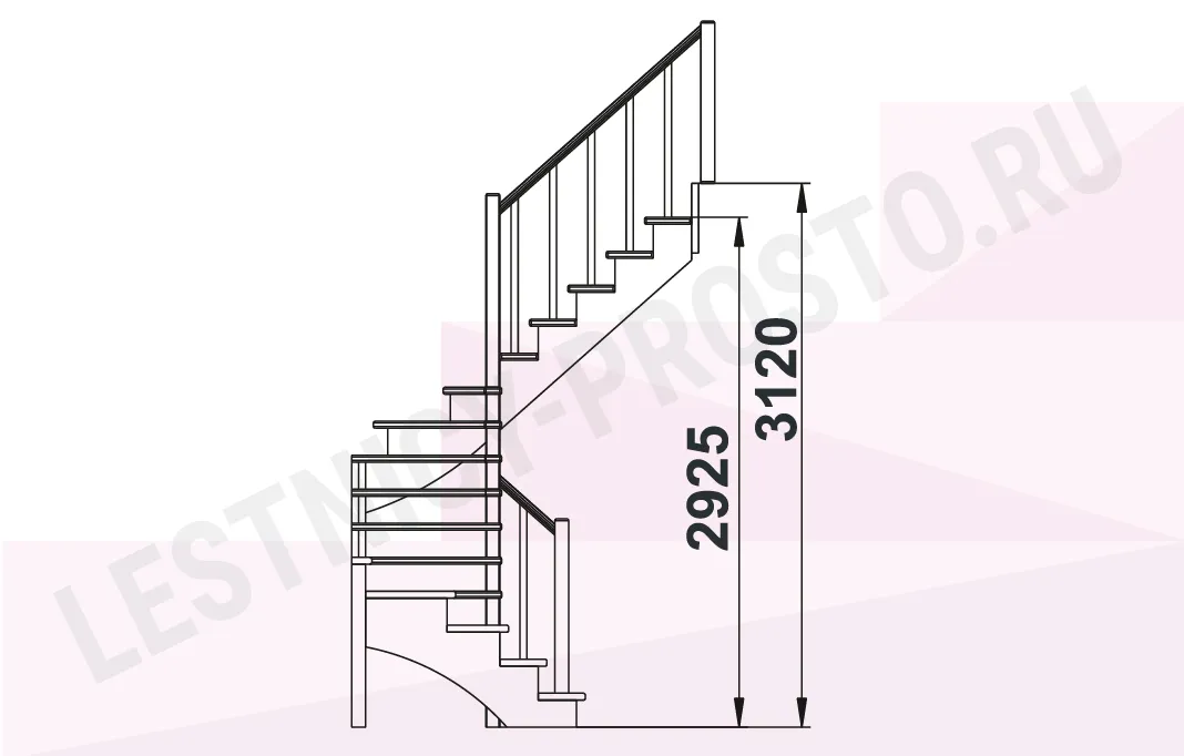 Ступени и поручень изготовлены из дуба, остальные элементы из сосны. Возможно изготовление данной модели полностью из дуба.