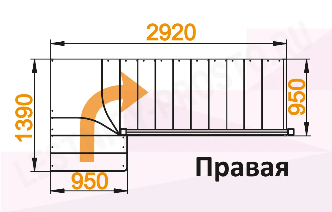 Схема лестницы К-031М/1 с поворотом направо