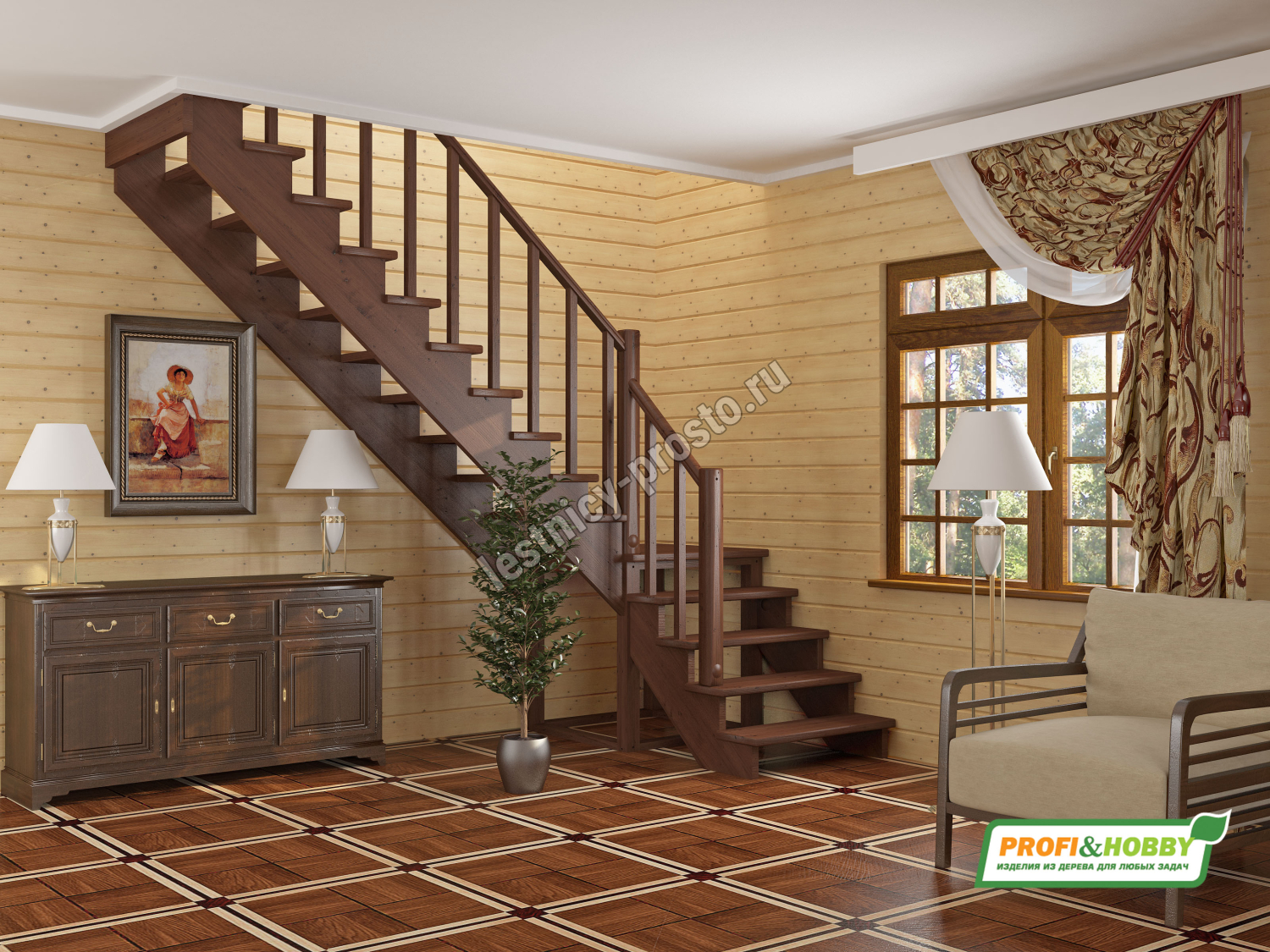 Лестница из сосны К-002М/2 с подступёнками