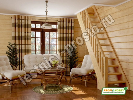 Базовый комплект включает в себя деревянные элементы лестницы и ограждения без какого-либо покрытия. Ограждение можно установить слева или справа. Увеличить высоту лестницы можно установив снизу подиум, точная подгонка высоты под необходимые параметры осуществляется засчет регулировки верхнего шага лестницы.