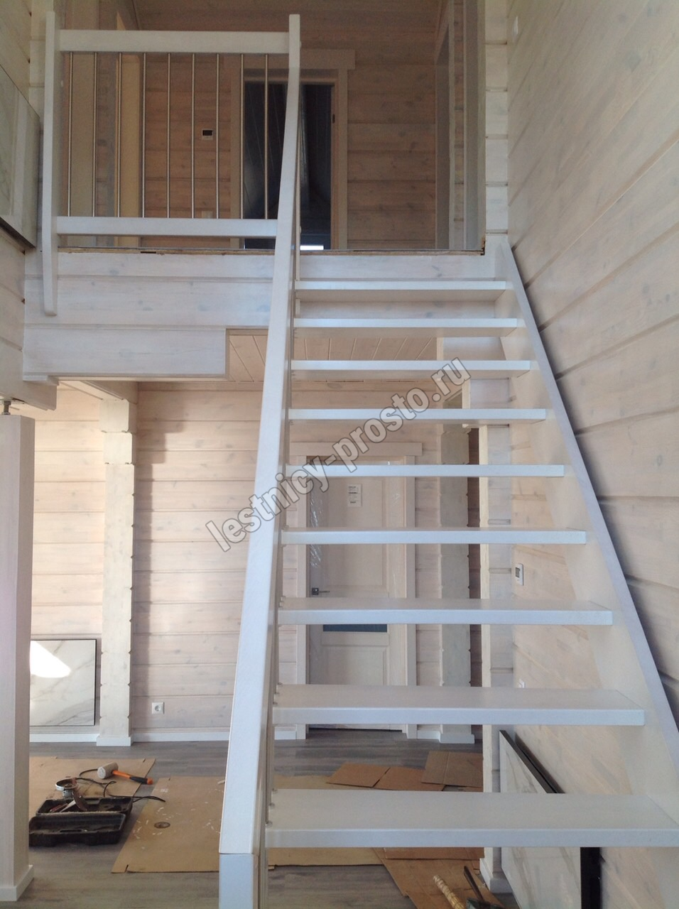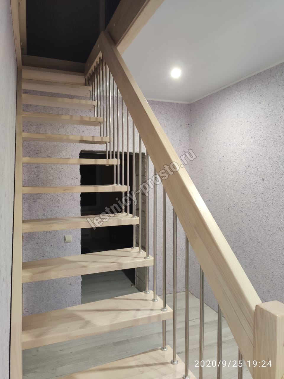 Надёжная современная лестница выполнена по немецкой технологии. Стоимость указана для лестницы с ограждением (с одной стороны); Поставляется в разобранном виде, в комплекте необходимый крепёж; Лестницу можно собрать самостоятельно; Так же, вы можете заказать услугу монтажа нашими специалистами; 4 вида породы дерева для изготовления лестницы: сосна, бук, ясень, дуб; возможна комбинированная лестница: из сосны (ступени бук, ясень, дуб); Деревянные элементы без какого-либо покрытия, отшлифованы, готовы к покраске. За дополнительную плату, вы можете изменить любые параметры, а именно: увеличить глубину ступени; увеличить ширину марша до 900 мм. и выше; заказать подступенки к лестнице; заказать отделку перекрытия (между 1-м и 2-м этажами); изготовить дополнительный промежуточный марш; заказать ограждение 2-го этажа; покраска в любой цвет или несколько цветов или покрытие защитными средствами; дополнение балясины из нержавеющей стали деревянными элементами; покраска балясин из нержавеющей стали порошковой краской в цвет RAL.