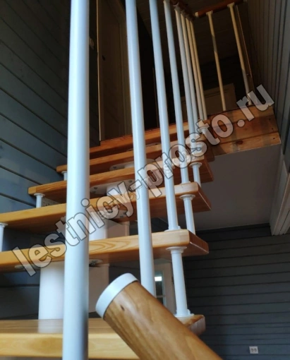 Готовый комплект ограждений с крашеными стойками собран специально для п-образной модульной лестницы PROSTO MODULE h337.5 (из 14 ступеней).