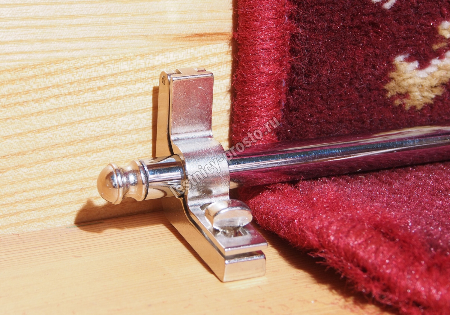 Ковродержатель комплектуется двумя держателями и двумя заглушками из латуни, а также хромированной металлической трубкой.