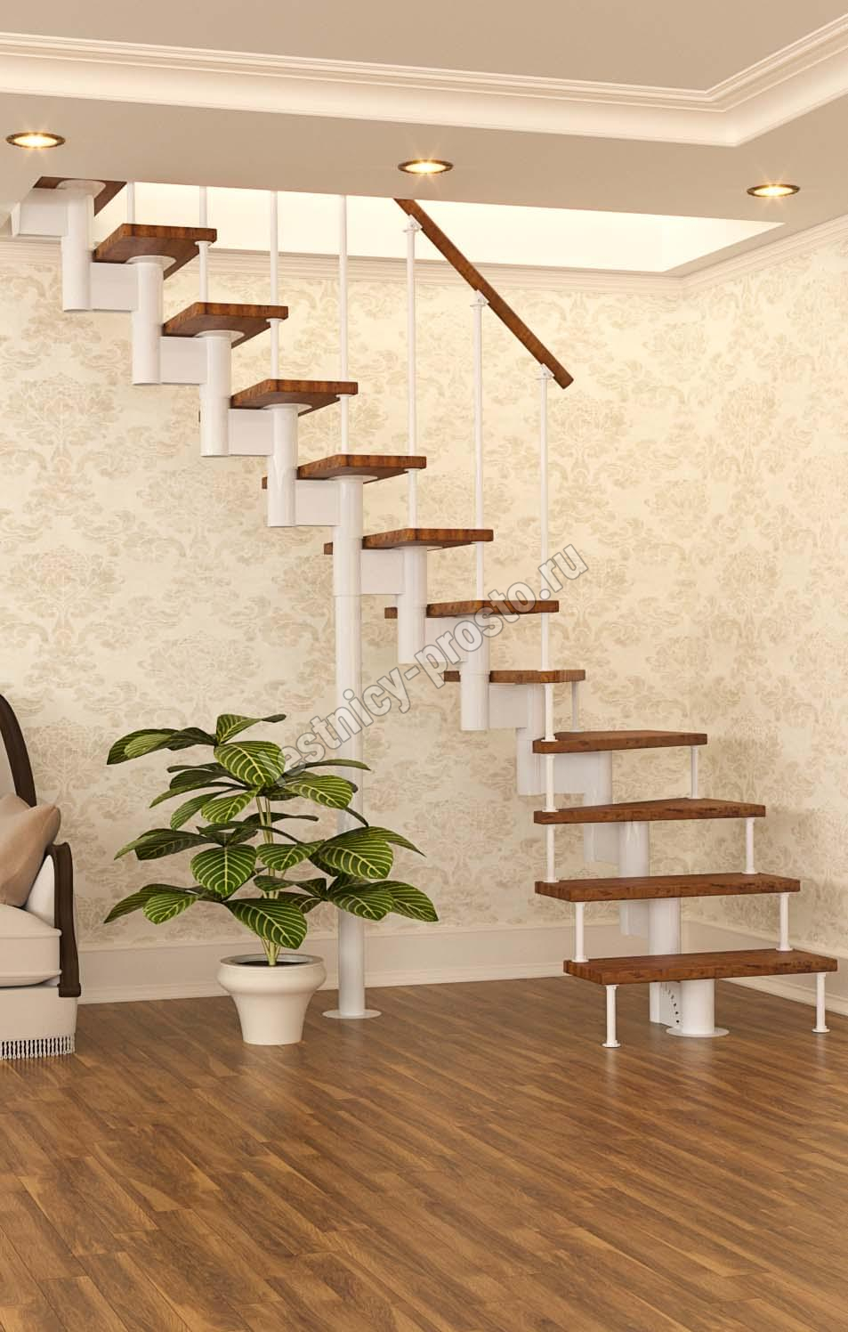 Модульная лестница PROSTO MODULE Г-образная, h225, лиственница