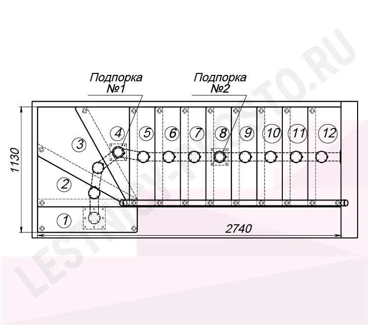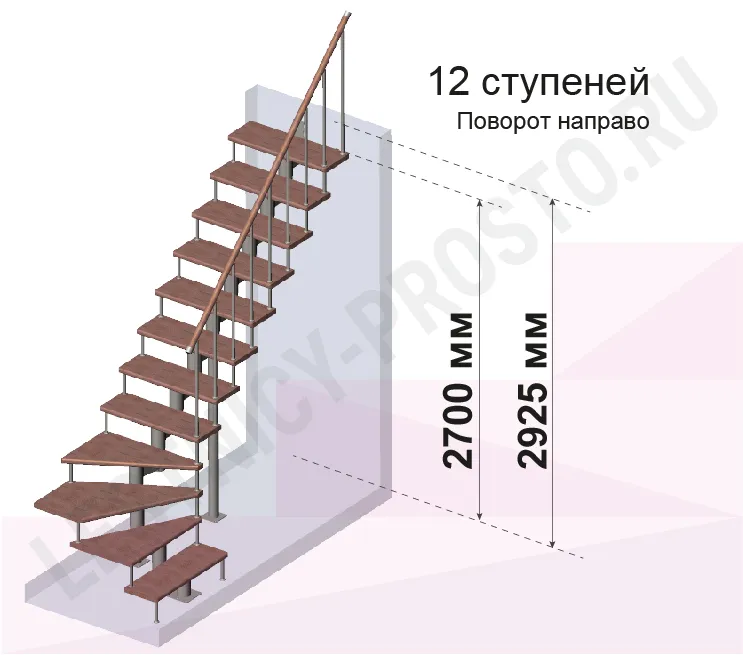 Высота лестницы 2700 - 2925 (12 ступеней) мм