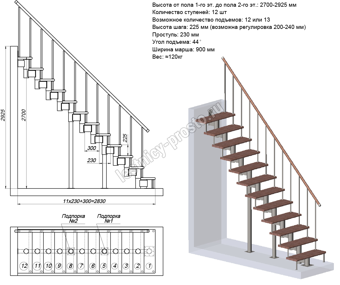 Поставляется в разобранном виде. Лестницу не сложно собрать и установить самостоятельно, при наличии базовых навыков работы с необходимыми инструментами. Если хотите сэкономить время и силы - вы можете заказать монтаж лестницы нашими специалистами.Упаковка: