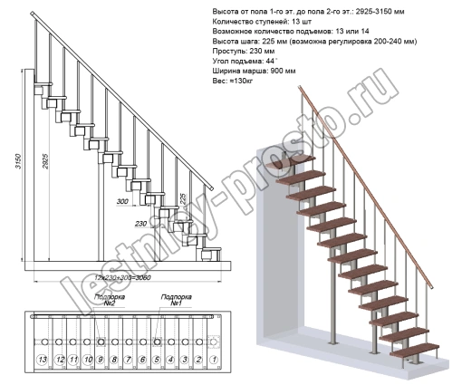 Стоимость указана за модульный каркас и ступени из лиственницы (ограждение покупается отдельно!)