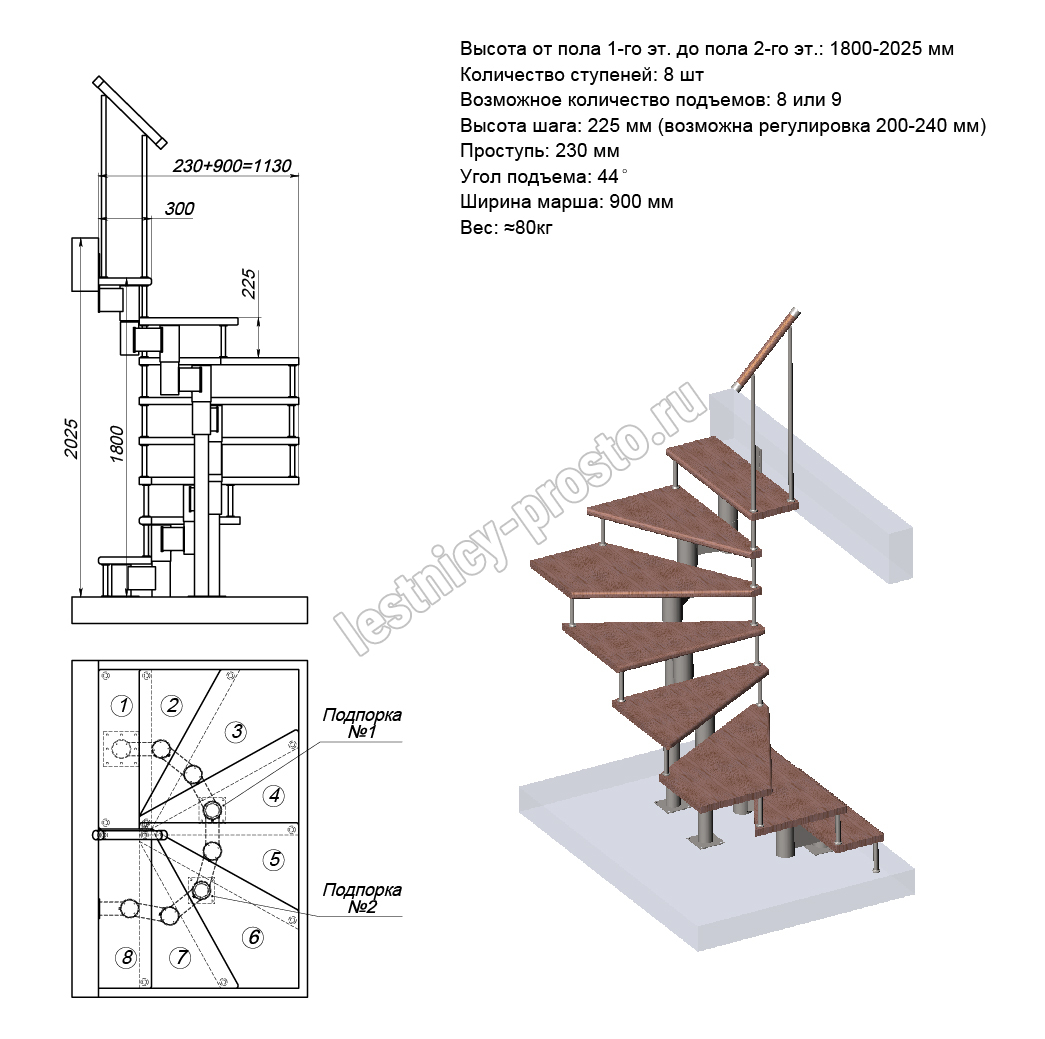 Схема и расчет указаны для шага 225 мм - мы рекомендуем эту высоту шага, как оптимальную для обеспечения комфортного подъёма и экономии бюджета.