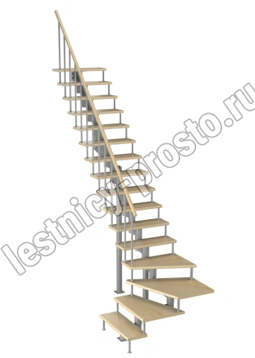 Модульная лестница Фаворит 180 2880-3040, Серый, Сосна, Нержавеющая сталь