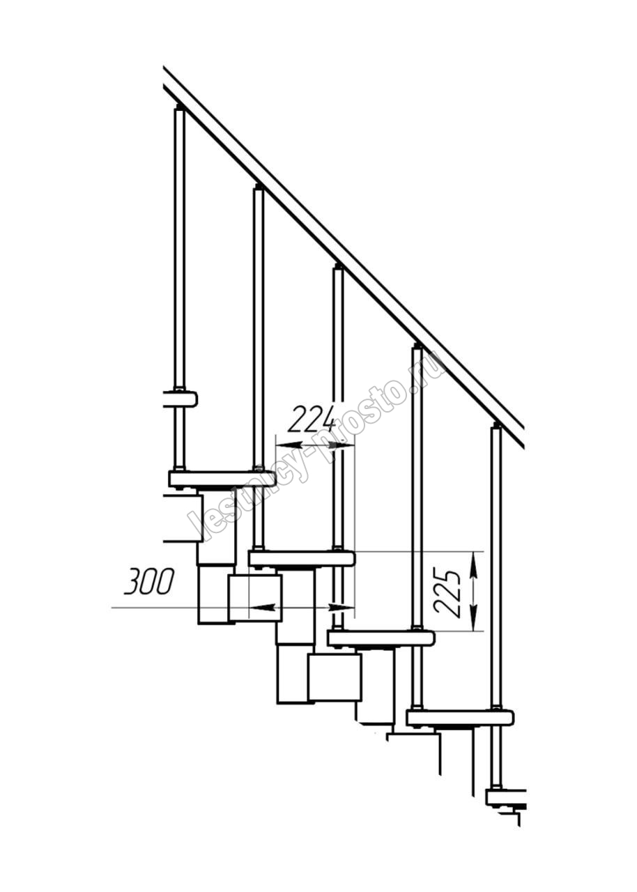 Модульная лестница Фаворит 225 2250-2350, Черный, Лиственница, Нержавеющая сталь