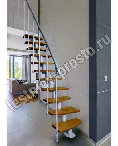 С помощью дополнительных секций(покупаются отдельно) можно увеличить высоту лестницы до 3750 мм. Модульный каркас лестницы позволяет собрать конструкцию, как прямую так и с необходимым небольшим поворотом в нужную сторону, благодаря чему эта модель идеально подходит для помещений с ограниченным пространством, где установка стандартных лестниц невозможна.