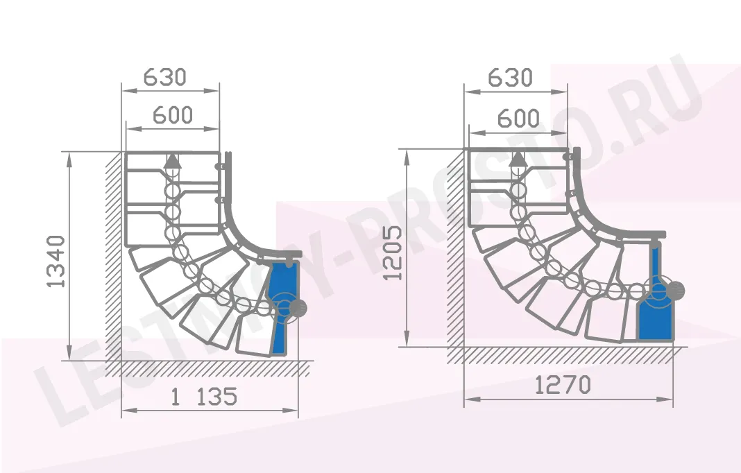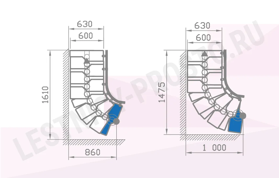 У лестницы  4 вариантов размера
