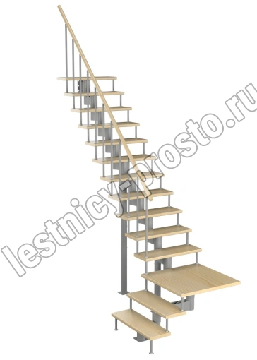 Модульная лестница Статус 225 3150-3290, Серый, Лиственница, Нержавеющая сталь
