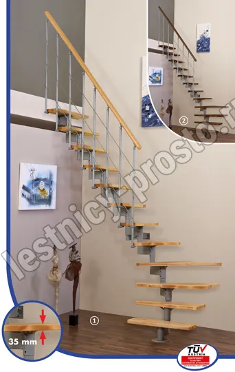 Компактная модульная лестница со ступенями из бука.