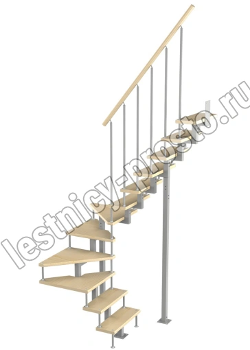 Модульная малогабаритная лестница Эксклюзив 2700-2925, Серый, Лиственница, Нержавеющая сталь