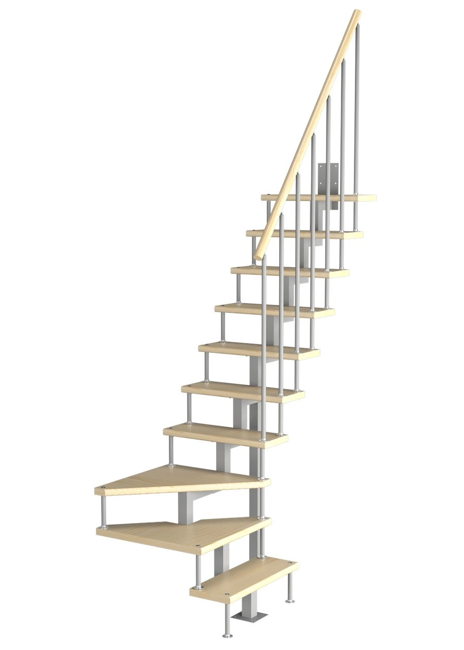 Модульная малогабаритная лестница Компакт 2250-2475, Серый, Лиственница, Нержавеющая сталь