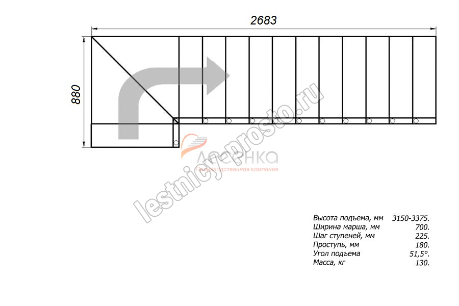 Высота лестницы 3150 - 3375 мм