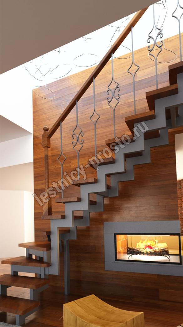 Основой лестницы Prosto Due 40×80 служит двойной металлический каркас из профильной трубы 40×80 мм (включая 2 опоры на пол под поворотом), который обеспечивает надёжную прочность конструкции и современный актуальный дизайн.