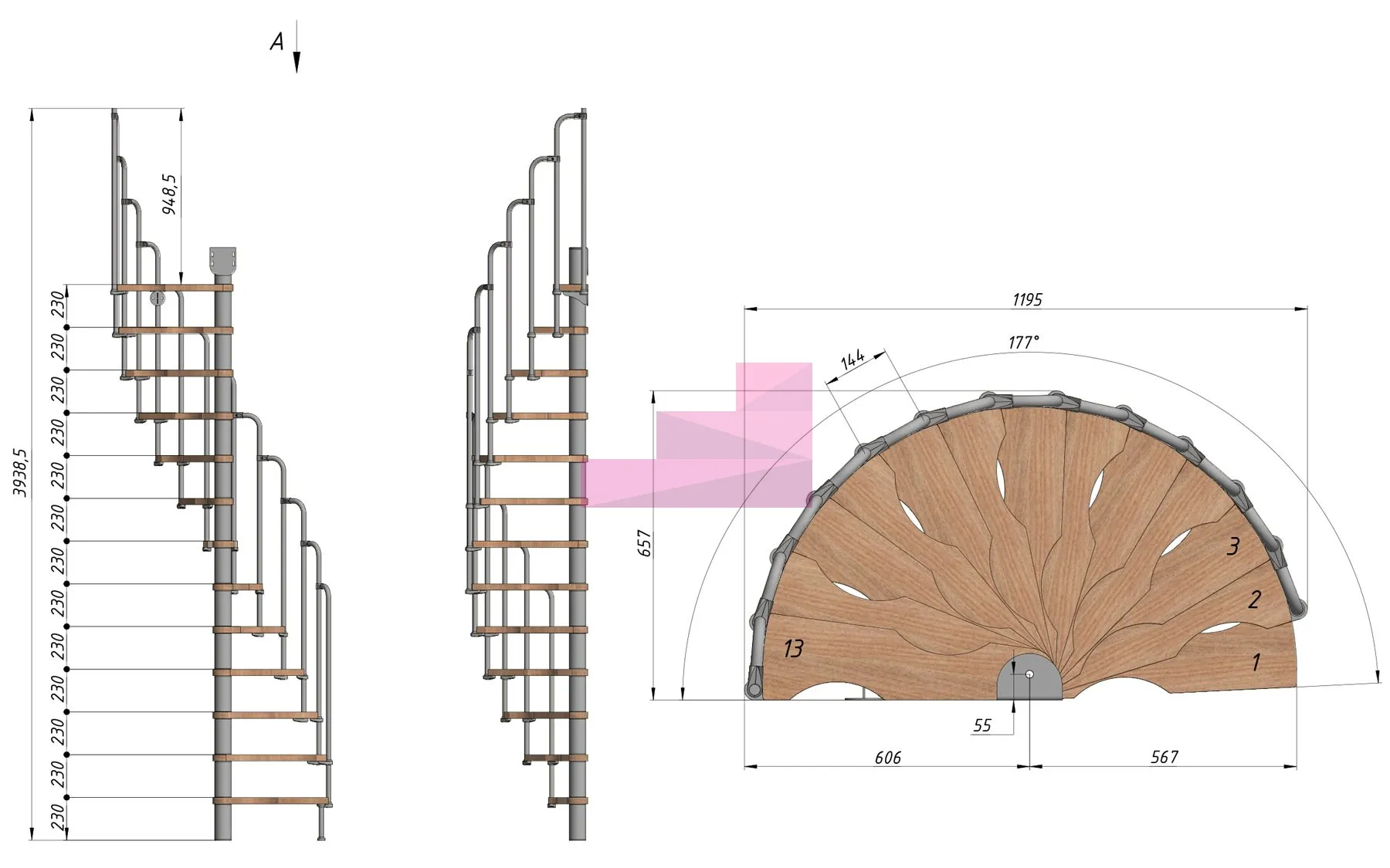 | Винтовая лестница PROSTO MINI 70×140 см, h322-345 см |