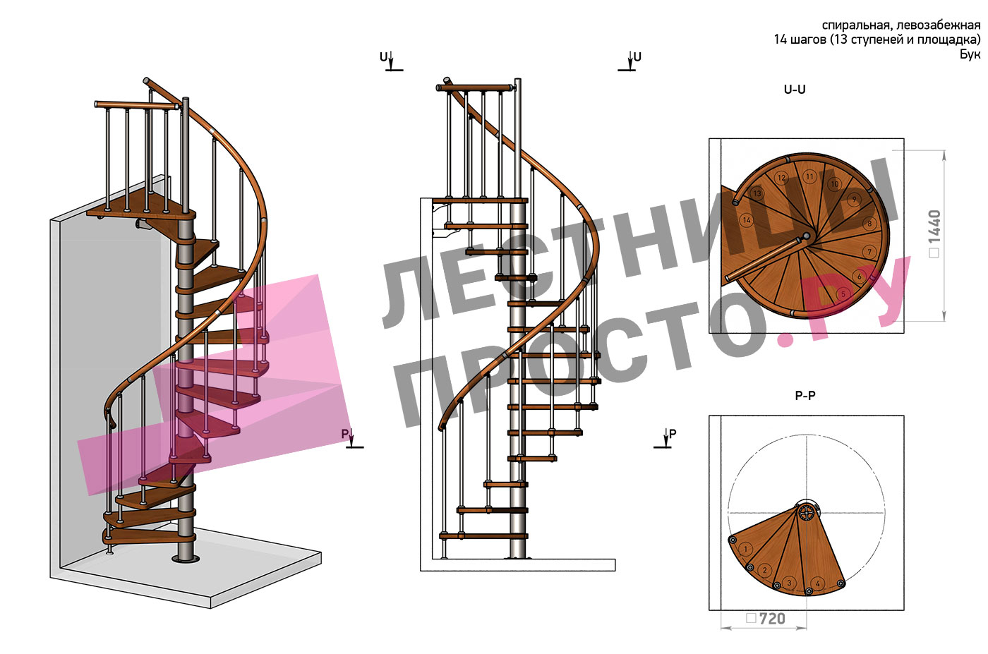 Решение о направлении поворота принимается при сборке лестницы - универсальная конструкция позволяет собрать правозабежную и левозабежную лестницы. Экономит пространство. Высота ступеней регулируется с шагом 3 мм. в пределах 217-247 мм., благодаря чему, лестница прекрасно подгоняется под необходимую высоту.