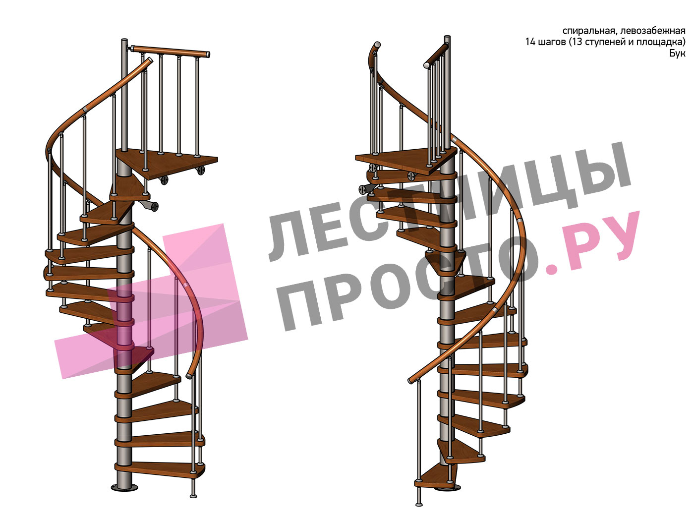 Ширина ступени между центральной колонной и поручнем ≈ 580 мм