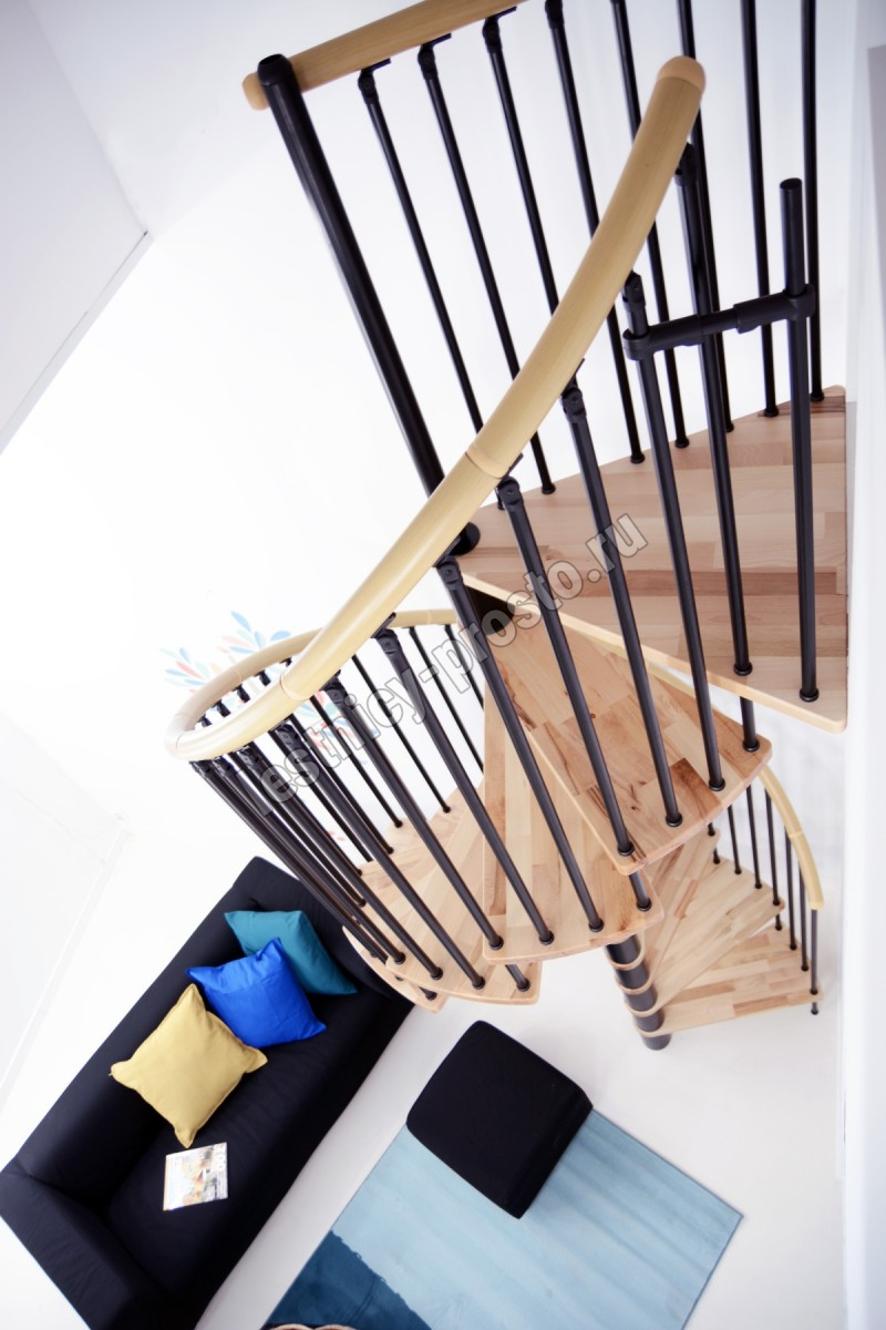 Поручень лестницы изготовлен из массива бука в тон ступеням. Ступени и поручень покрыты износостойким защитным лаком.