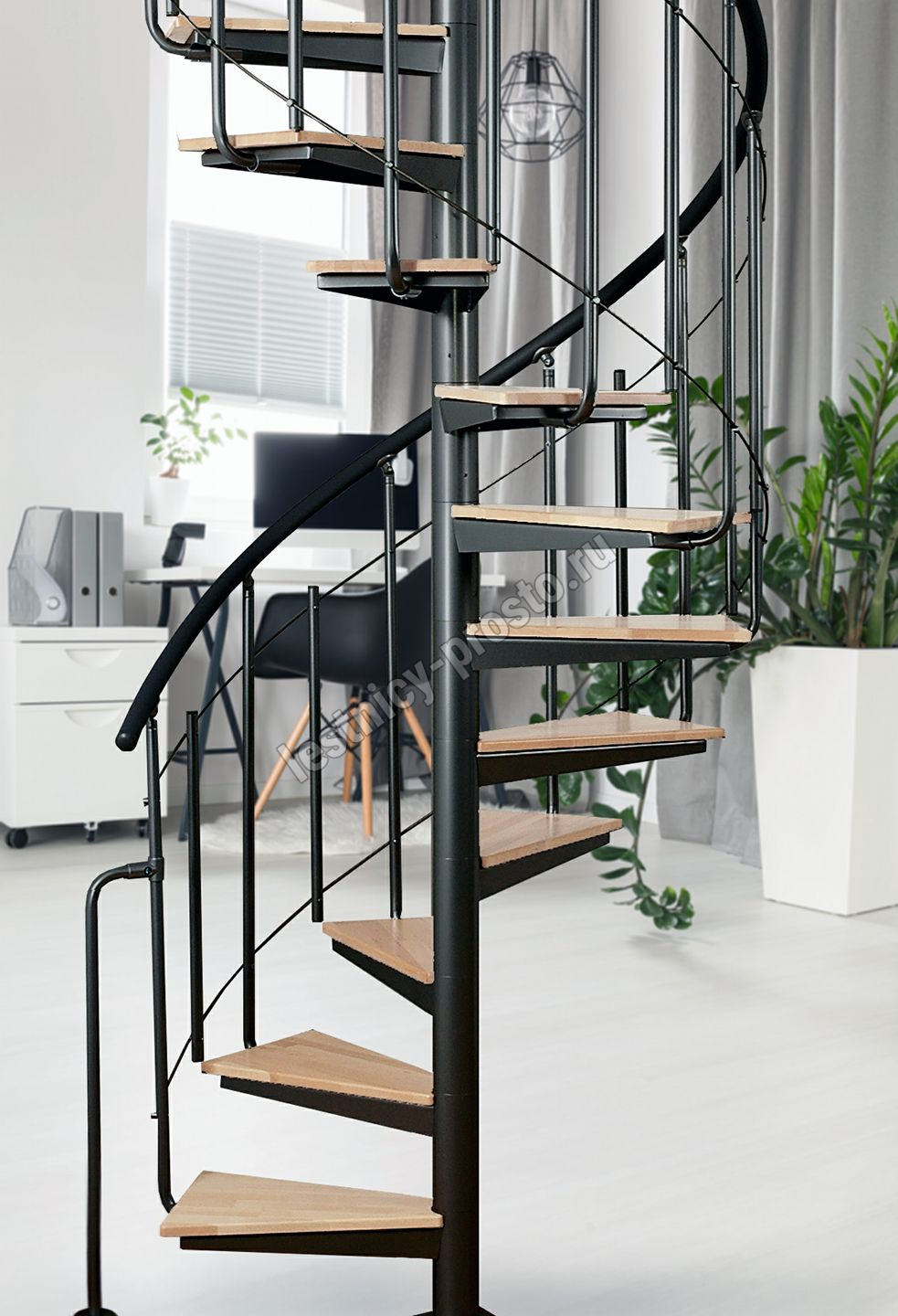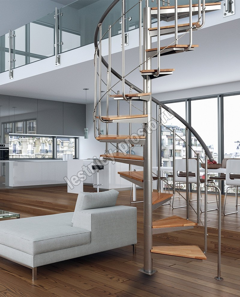 | Винтовая лестница Solo vertical серебро, натуральный бук |