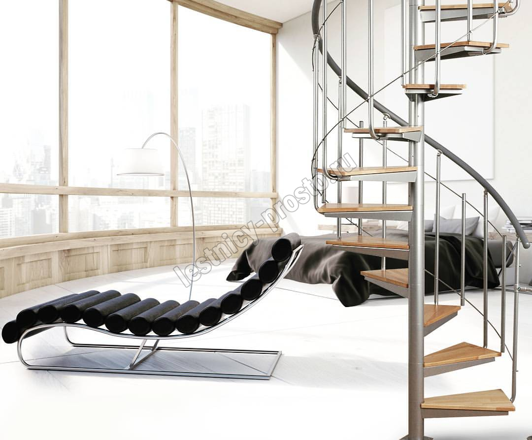 | Винтовая лестница Solo vertical серебро, медовая ольха |