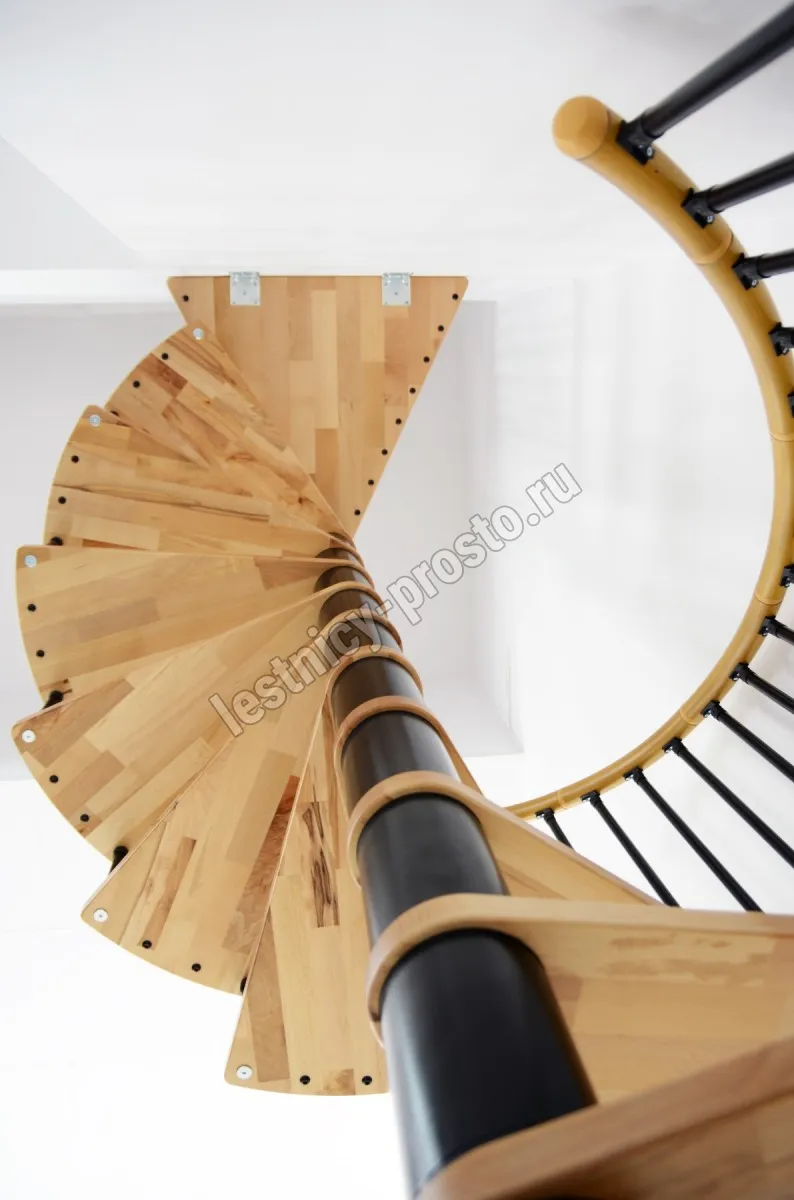 Винтовая лестница SPIRAL WOOD d120 см. чёрная, лакированный дуб