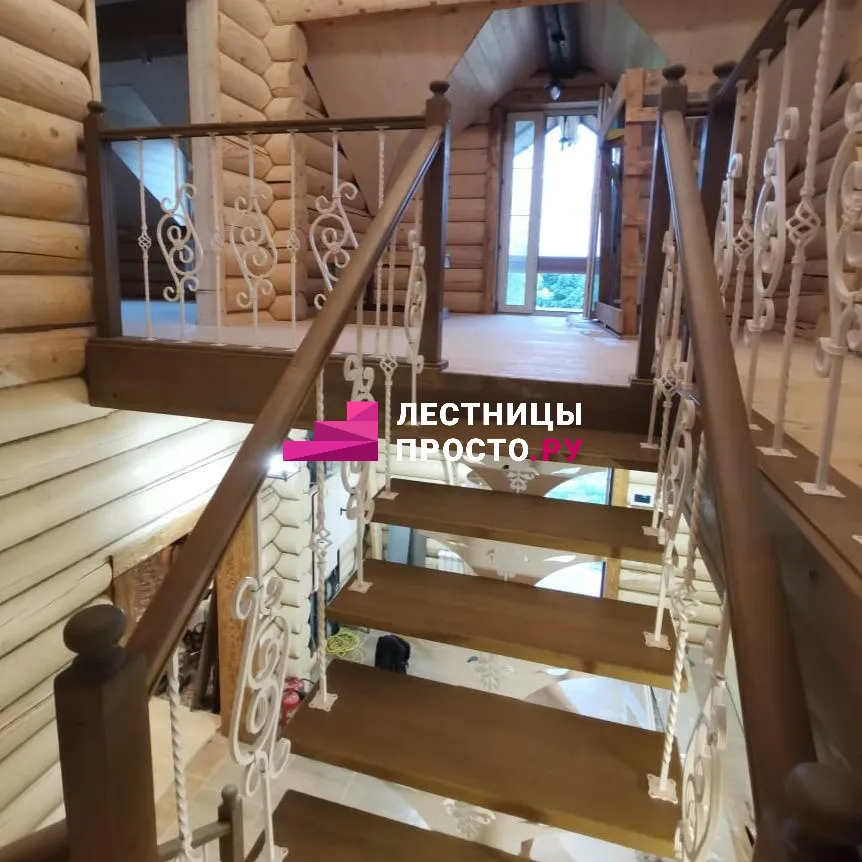 Лестница из ясеня с фигурным ограждением ЛГ 200